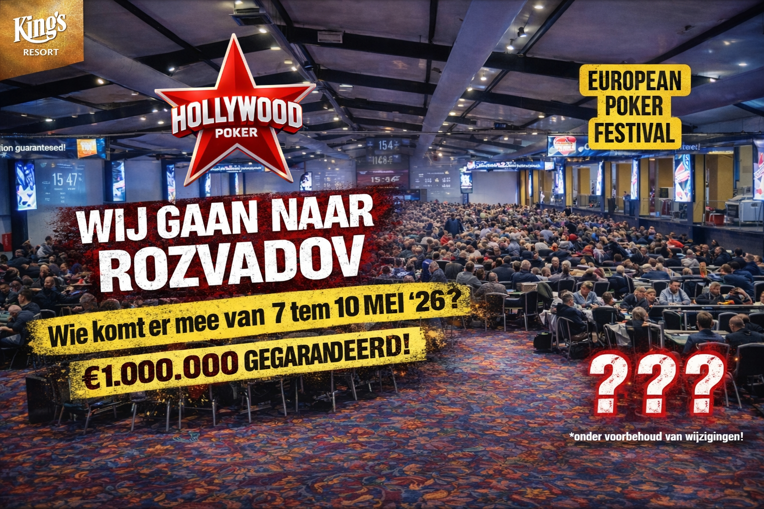 KING'S RESORT (ROZVADOV Tjechië)We spelen dan (the european poker festival)met een GEGARANDEERDE PRIJZENPOT VAN 1.000.000 EURO
